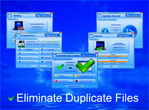 Eliminate Duplicate Files Pro - Version 4.17 Eliminate Duplicate Files - easily with the Software, Recommended by Microsoft(R) Corporation. This program can find duplicate files, delete file duplicates and remove duplicate files automatically. Just download duplicate file removing software and it will eliminate all duplicate files on your computer.Remove Duplicate Files - Everywhere: ~ Eliminate duplicate files from Computer(no more file duplicates on your personal, home, office or family PC) ~ Delete duplicate files from Hard disk drive(find and erase duplicate files from computer internal hard disk and external HDDs of all models) ~ Remove duplicate files from External memory devices(delete file duplicates from memory cards, flash drives, hdds, SD cards, miniSD, microSD, SDHC, SDXC cards)