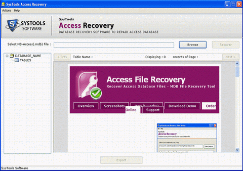 Fix Access - Version 3.1 Any database application whether created with complex technology or rather simple technology is prone to get corrupted. In this case MS Access is not different from any other application. Now the question arises is how to deal with Access database corruption? Fix Corrupt Access Database with the Fix Access tool used by database users, if there database gets corrupted. To get back all your MS Access database information you need an application which repair corrupt MDB file in a manner where there is no fear of any damage of Meta data information. Each object of Access database such as tables, queries, relationships, etc are repaired by Fix Access program. SysTools Access Recovery Tool provides a way to Repair Corrupt Access even if your database is password protected. In just few clicks & your corrupted database will be recovered which has become impossible to access, after the recovering process is complete you can easily access you MDB files. The feature of MS Access Recovery does not end here. Additionally, it provides the information regarding number of tables, headings of