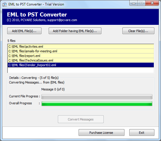 Windows Live Mail to Outlook Migration - Version 4.01 Windows Live Mail to Outlook Migration becomes an easy task if you have PCVARE EML to PST Converter software which is the top email conversion tool when the question is of converting EML to PST. Software has gained much popularity among user across the world; it has provided the facility of Windows Live Mail to Outlook Migration to users with satisfactory result. Windows Live Mail EML to Outlook program migrates all the EML files from Windows Live Mail of Window 7 to Microsoft Outlook. Transfer email items such as metadata, email attachments, formatting, etc from Windows Live Mail to PST. Windows Live Mail to Outlook Migration is no more a tiring chore, few clicks and all your EML files from Windows Live Mail will be migrated to MS Outlook in minutes. Download trail version of EML to PST Converter for free demonstration of the software, trail version will migrate only 10 EML files to Outlook. For complete Windows Live Mail to Outlook Migration get hold of the license version of EML to PST Converter at $49. The program will let you to migrate EML files of Outlook Express to Outlook