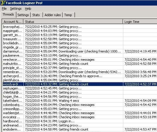 faceBook loginer pro - Version 0.01 This facebook loginer pro will not only login in the accounts and give u statistics but will also do the next * auto aprove add me requests * send add me request ( from fb suggestions or from specific list )try it free (1 thread is free ) and see how powerfull this tool is !
