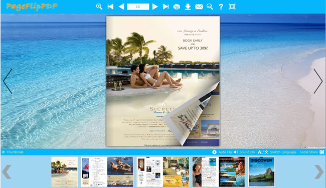 Beach theme for PageFlip Book Designing - Version 1.0 This is Beach theme for page flip book designing is free here. There are four templates packed together and you can learn how to use it with the txt document which is called ¡°how-to-install¡±. This theme describes a refreshing beach feeling, which makes people associate with wonderful mood and great pleasure. You can use these templates to create beach style flipping page book, summer related digital brochures, fresh style flipping magazines and so on. Just vivid your vision with easily installation and simple design. Then you can own a refreshing page turning book with 3D effects and attract others with its concise layout.Guide to Install Themes & Template for PageFlip PDF to FlashTo use Themes & Template, you must install PageFlip PDF to Flash first!Download URL: