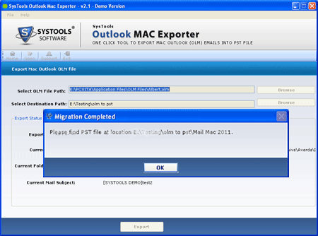 Convert Outlook OLM to PST file - Version 2.5 Convert Outlook OLM to PST file software is a outstanding powerful tool and expert solution for Convert Mac Outlook Emails to Windows Outlook Emails. It helps the user to take out all email data and Convert Mac Mail to PST. OLM Export PST converts all emails, contacts, tasks, notes, calendar, meetings, journal, appointment etc. Our software OLM Converter tool is convert email properties like such as CC, BCC, Date, Subject, and from. To Convert Mac to PST you can simply download our demo and see working style, it supports MS Outlook 98, 2000, 2003, 2007 and 2010. Free demo version also available. The Product exposure prior to purchase lets the user knowledge the procedure of extracting email items from Mac OLM file and view first 50 Converted Emails as PST Outlook save converted items to PST. You can order for complete process version of our software Convert Outlook OLM to PST File at only $129 for the personal license. For more info-: http://www.convertolmtopst.com/