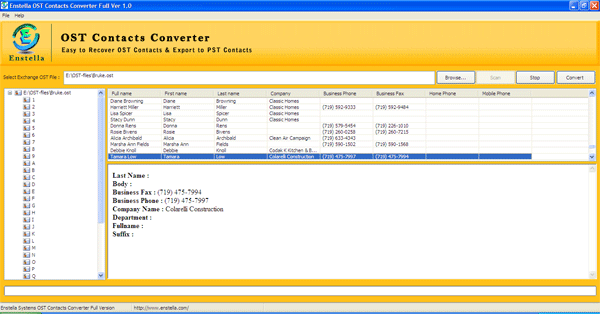 Export OST Contacts to PST - Version 1.1 If your OST file gets corrupted and you are unable to access your OST contacts easily and required best OST contacts recovery solution then trust on Enstella Export OST contacts to PST software. Outlook OST contacts recovery tool easily extract OST contacts or extract OST address book from broken OST file and convert OST address book contacts to outlook. Superlative feature based convert OST contacts to outlook tool allows to fix OST contacts of some Exchange OST files versions-5.0, 5.5, 2000, 2003 and 2007. Through fast scanning process of OST address book exporter tool OST file users can easily read OST contacts and get back OST contact list or contacts groups into PST contacts including- General, Details, Activities, Certificate, fields, address book, phone numbers etc. Export OST contacts to PST software has some brilliant features such as- *OST contact recovery tool initially recover corrupt OST file & then extract OST contacts list. * OST address book exporter is