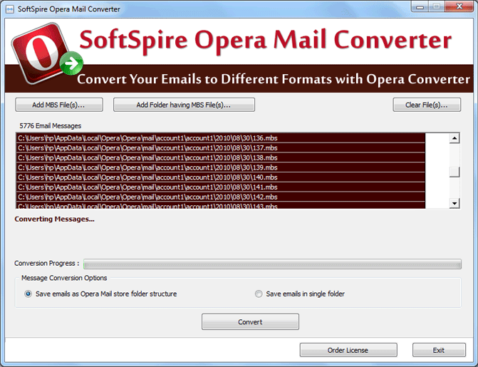 Export Opera Mail to Outlook - Version 1.2 Need to move & transfer Opera Mail to Outlook? Export Opera mail to Outlook software can help! Industry's leading Opera Mail Converter to convert opera mail to outlook, 7 to export opera mail to outlook. Process to export opera mail to outlook is easier & simpler using Opera Mail Converter Program. Opera Mail to Outlook Converter can successfully convert opera mail emails to outlook. Export Opera mail to Outlook using opera mail converter along with all of its key elements such as: To, Cc, Bcc, From, Sent & Received date, Attachments. Try Export Opera mail to Outlook program to convert opera mail to outlook, import opera emails to outlook. Demo version of Export Opera Mail to outlook converts only 10 emails MBS files of Opera mail to pst file. Export Opera mail to Outlook Software successfully runs on Windows 95/98/ME/2000/XP/2003/Vista and Windows 7.