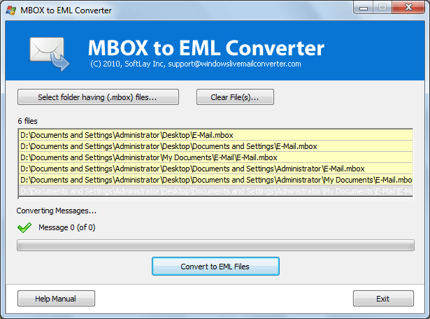 MBOX to EML Converter - Version 5.0 Is there any way to convert MBOX to EML? This question always bothered yourself when you trying to convert and extract mbox emails to eml files. MBOX to EML is wonderful utility to convert MBOX to Windows Mail MBOX to Windows Live Mail and MBOX to Outlook Express without any difficulty. Advanced MBOX to EML Converter from SoftLay is an ultimate solution to extract emails from corrupt mbox files then convert mbox files emails to eml format which can easily import into Windows Mail/Windows Live Mail/Outlook Express. If you are converting MBOX to EML then you can choose SoftLay MBOX to EML converter freeware demo to import MBOX to Windows Mail and to import MBOX to Outlook Express it is also known as MBOX Extractor which can convert multiple MBOX/MBX file to EML format of Windows Live mail, Windows mail and Outlook Express mail in Batch mode. MBOX to EML converter has excellent features to successfully extract emails from MBOX file of Thunderbird, Apple Mac mail, Eudora & Entourage, Berkeley mail, & BSD mail and save the extract emails into EML format. EML is the individual message file of