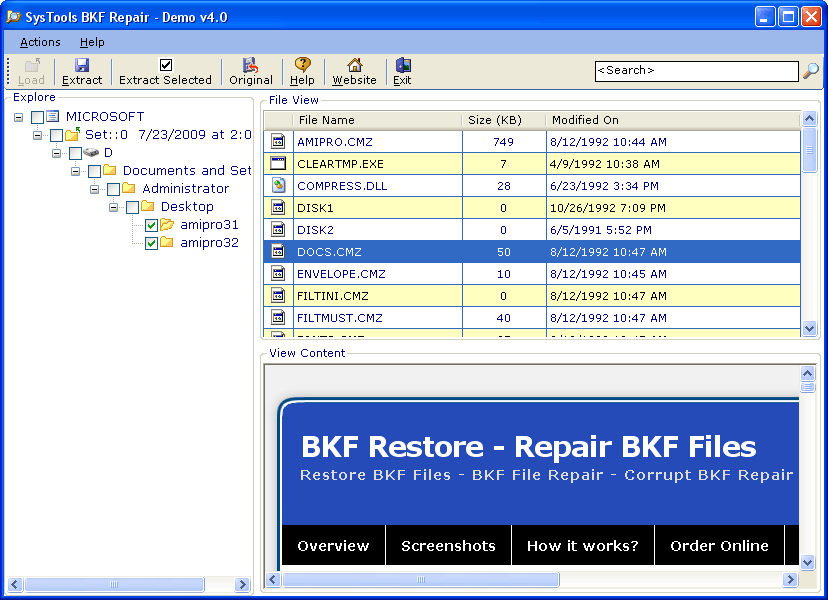 MS Backup Repair Software - Version 4.0 Backup files are most essential for recording and storing large number of data. Data Backup involves storing of files in another location. In this way, if there is ever any loss of data on your Computer System, you still have your data in backup in order to restore those files. But Now Days these backup Files have become increasingly vulnerable to data loss according to company records. Backups help you to restore files but these are cheaper in terms of data protection. Backup files also tend to get damaged by virus, Trojan attacks, and then will find your data inaccessible, missing or lost from your computers and servers. MS Backup Repair Software repair corrupt bkf files created using ntbackup.exe, Veritas Backup Exec or any other backup solution having MTF format. MS Backup Repair Software successfully repair corrupt bkf files even after the instances of errors like: "The backup file is unusable. You must erase it, or choose another file"; "The fixed media is full. You cannot back up all of the specified data to this disk device. The backup operation will stop"; "The backup file