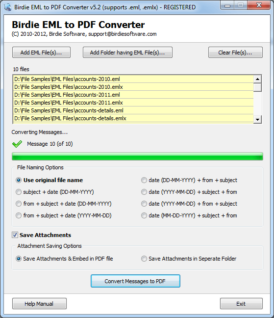 Mac OS X to PDF - Version 5.4 Desire to move your emails from Mac OS X to PDF file? Use the updated edition of EML to PDF Converter v5.0 to convert Mac OS X to PDF in instant approach. Download now EML to PDF Converter that successfully works as Mac OS X to PDF conversion or migration utility to convert emails from Mac OS X Mail like; Mac OS X Tiger, Lion, Snow Leopard, etc into PDF format in one go. Our Mac OS X to PDF Converter tool also supports to convert EMLX files to PDF format with all email file details like; To, From, Subject, Date & Time, Body Content, Signatures and it also save your attachments & Embed in PDF as well as save attachments in separate folder in unfailing manner. By converting EML and EMLX files to PDF you can easily print your emails and share your PDF files to others. Convert Mac OS X to PDF tool also works as batch EML to PDF tool and batch EMLX to PDF tool in other words software supports to convert huge amount of EML and EMLX files to PDF at a time without any loss of data. Try the FREE EML to PDF Converter before buying the full licensed version which is available only @ 69.00; the