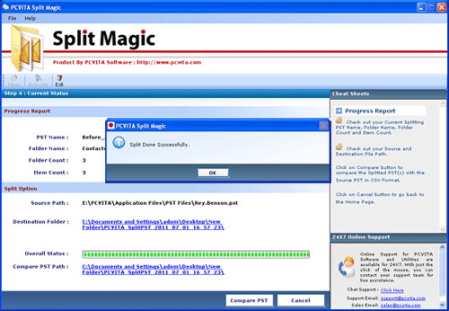 Microsoft Office PST Split - Version 2.1 Microsoft Office PST split software package to split Microsoft Office PST files quickly. So no need to invest your time and money in searching of the product, you can just download the demo tool to try it first. PCVITA Split Magic software demo provide you the authority to split 50 items of Outlook PST to multiple PST conveniently. This software can't split oversized Microsoft Office PST files and corrupted Microsoft Office PST files, this software work only with working PST files. But this service is free with full version of Microsoft Office PST split software; you can get these services from our 24*7 online tech support. Purchase the full version of Microsoft Office PST split tool in just $49 for personal license and you can split all Outlook PST files instantly.