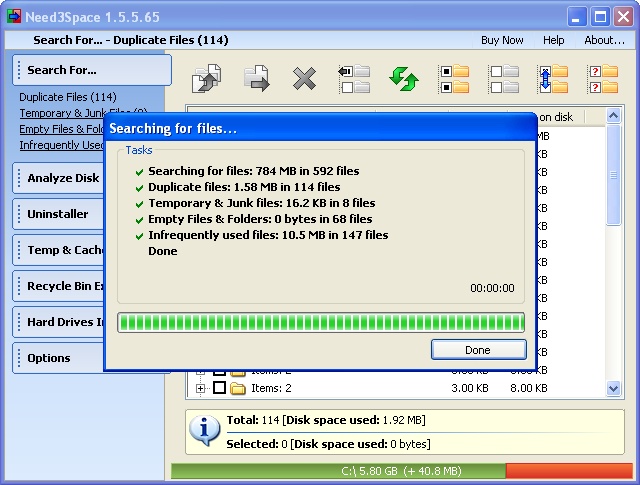 Need3Space - Version 1.5.5.65 Need Free Space is a comprehensive set of tools which helps you to control and manage your disk space, while also gathering free space. With Need Free Space you can find and remove duplicate files, temporary files, unneeded or junk files, old files, zero-size files and empty folders.Number of options allows you to customize your search. You can exclude some directories from the search (for example, system directories), you can find duplicate files more effectively by excluding from the search small or large files, duplicate files with specified attributes (system, hidden, read-only). To search for temporay and junk files you can also add your own wildcards.With the Analyze tool you can find out which folders and files are the largest on your drives with only a glance and a few clicks. One of the options of the Analyze tool is to group all files on selected hard drives or folders by the file type, which allows you