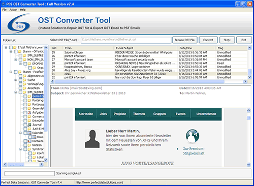 OST to PST - Version 3.5 Now Perfectdatasolution developed innovative OST to PST software which efficiently recover OST file from corrupt OST database. Easy to use Exchange OST recovery software repair corrupt OST file and get back OST data into MS outlook. Offline storage folders (OST) environment get violated due to some causes such as:-files gets corrupted due to file virus attack, software and hardware failure, data corrupted due to breakdown of Exchange server connectivity, suddenly shut down due to power failure etc. If you are also facing these kinds of situations and want to cope up immediately then download PDS OST to PST recovery software which is powerfully design to handle these kinds of problems by exporting OST file to PST file. OST email recovery program easily extract OST mailbox and convert OST to PST with contacts, journals, tasks, notes, calendars, sent items, received items, draft folders, junks mails etc on some supportive MS Outlook versions-98, 2000, 2002, 2003, 2003 and 2010.Some brilliant features of Exchange OST to PST recovery software :-