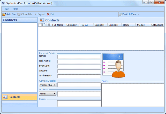 Outlook 2007 Contacts Migration - Version 4.0 If you having issues to migrate Outlook contacts, you can try SysTools vCard Export. SysTools vCard Export provides Outlook 2007 Contacts Migration utility to convert Outlook to vCard and many more software. Every user who wants to change the format of Outlook Contacts in vCard, MS Excel and Outlook Express can try Outlook 2007 Contacts Migration. Outlook vCard Contacts Software gives some easy steps to Migrate Outlook Contacts • Select Outlook PST files whichever you want to migrate• Select & Scan Outlook Contact then click on “ok” option• Now you can click on "Save Contacts" option to save Outlook Contacts in one of these options such as vCard file, MS Excel and Outlook ExpressUsing the above steps you can easily Migrate Outlook Contacts either you are novice or expert user. Software supports both Configured and Orphan PST file for migration. You can easily re-arrange Outlook Contacts by using this software. Outlook vCard