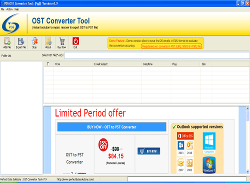 Outlook 2010 OST Repair - Version 3.5 PDS Outlook 2010 OST repair tool is the most appropriate solution to recuperate or recover corrupted OST file and convert OST file to PST. Sometime OST (offline storage table) files gets corrupted or not easily access on your window due to following reasons- * Suddenly break down of MS Exchange server connections. * Virus attack.* File size error. * Software problem in your system. * Hardware failure etc. If you are not able to access OST file and want to open then instantly try PDS Outlook 2010 OST repair tool which has great capability to read entire corrupt 2010 OST files and powerfully export OST file to PST. Outlook 2010 OST to PST converter tool nicely work with corrupted OST emails and efficiently fix OST outlook 2010 file into PST Outlook including 2010 OST emails, contacts,