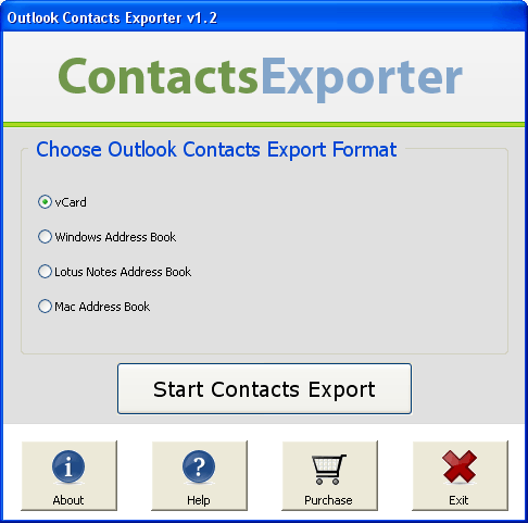 Outlook Contacts to VCF - Version 1.2 Are you searching for a tool which easily converts all your MS Outlook Contacts to vCard file? If yes...Then your search ends here! We offer you the perfect solution to Convert Outlook Contacts to VCF file. Our Outlook Contacts to VCF software has been proved to be the excellent Outlook contacts converter tool to convert Outlook Contacts to vCard. Our Outlook Contacts to VCF successfully converts all the Outlook Contacts information to VCF file. Software quickly reads contacts from Outlook PST file and then performs Outlook Contacts to VCF conversion including all components like: email address, first name, last name, address, city, country, etc. Software also helps users to convert MS Outlook contacts to Lotus Notes, Mac Contacts, windows contacts, Entourage etc. Convert Outlook to VCF is now an easy task with PST to VCF file converter that helps users to convert contacts of Outlook 98/XP/2000/2003/2007 to vCard (.vcf) file. You can get PCVARE Outlook Contacts Exporter only at $49.00.