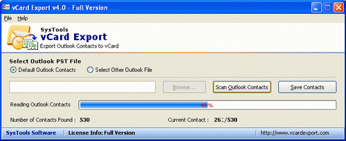 Outlook to vCard Address Book Converter - Version 4.0 How to Export PST Contacts in some other file format? SysTools vCard Export is most beneficial for Outlook Address Book Conversion. Outlook to vCard Address Book Converter is a cost effective tool to import Outlook Contacts to Excel and WAB format. It is really correct way to Convert Outlook Address Book in some other format in a little time. It saves contacts, phone no and email id etc information in VCF format. vCard Export tool is designed to convert Outlook Address Book to vCard, Outlook Express & MS Excel.It is beneficial in the following circumstances." In your working place, Outlook environment is going to be change into Outlook Express" For security reason: As MS Outlook save the entire Outlook item into a single PST file and Outlook Express creates a separate file for saving contacts into WAB file." Less Execution time: As compare to other software, MS Outlook takes much time for execution because it saves the entire data into one PST file." If you convert Outlook Contacts to vCard, you