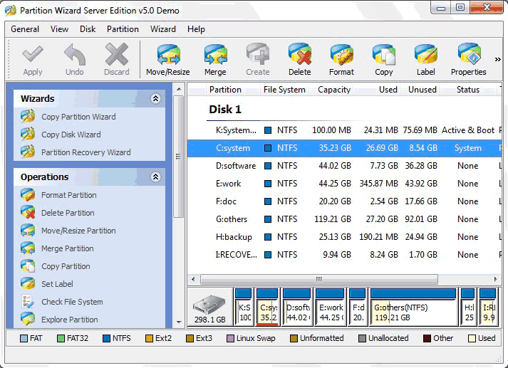 Partition Magic Server - Version 5.2 Partition Magic Server is an all-in-one and magic server partition manager software to resize, merge, copy, format, delete partitions, etc. It helps extend system partition, copy partition, do partition recovery, convert dynamic disk, etc. in Windows Server 2000/2003/2008 systems. Special features: Hot Resize partition without reboot, enhanced data protection technology.The first attractive feature is its partition management function which helps extend server system partition to solve low disk problem, resize/move, create, format, delete, convert partition, rebuild MBR, convert dynamic disk to basic. Besides, it allows you to drag and drop on the disk map. Moreover, it doesn't require a reboot when extending NTFS partition to minimize the computer downtime.The second feature is useful when you want to copy partition or hard disk. For example, when you want to upgrade the disk into a larger one; transfer Windows