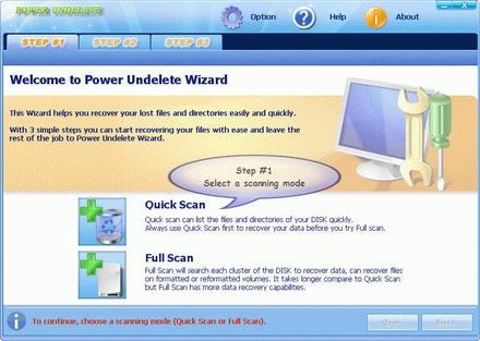 Power Undelete Wizard(1-Year License) - Version 3.2 Undelete file is very easy. Recover deleted file is easy. Power Undelete Wizard is an easy-to-use, windows based application designed for recovering deleted files from NTFS or FAT32 volumes. It even can recover files from formatted or reformatted disk. It can scan disk and find lost files and data blocks, these lost files may be deleted by mistakes, viruses, trojans, spywares, or other applications running on your PC. The software easily recovers data from hard disks, digital cameras, and any type of storage media - flash drives, USB drives, memory stick, secure digital card, etc.Like no other recovery tool Power Undelete Wizard is easy to use, featuring a step-by-step interface that will guide you through several stages of data recovery. You will get your deleted or lost files back in minutes. Features & Recovery Ability:*. Support NTFS and FAT32 volumes. *. Support removable devices. *. Support large size hard drives.