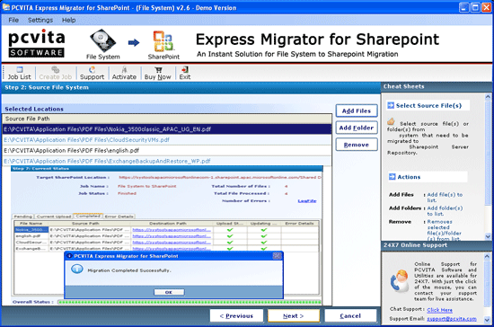 SharePoint Migrator - Version 2.6 SharePoint migrator software skill fully migrate all the data to SharePoint repository with satisfactory result. You can safely move your crucial data to SharePoint through our SharePoint migrator software. We provide you a wide range of software that help you for all types of data migration whether it is file system, file share, exchange public folder, SharePoint latest version migration etc. take a look of these unforeseen ranges:- File system to SharePoint migrator: - Help you out to migrate file system to SharePoint- Lotus Notes to SharePoint migrator: - Developed to migrate Lotus Notes to SharePoint - Public folder to SharePoint migrator: - This is to migrate exchange public folders to SharePoint- SharePoint to SharePoint migrator: - Migrate SharePoint to SharePoint 2010 to upgrade SharePoint