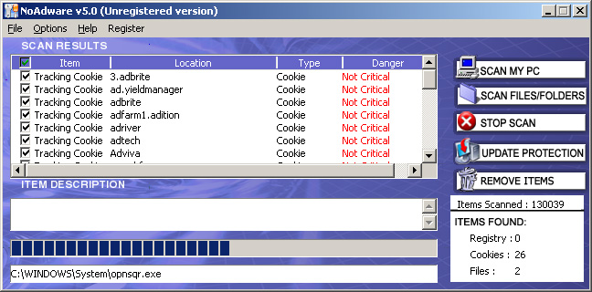 No Adware Pro - Version 2008.01 No Adware Pro is user-friendly adware remover, constantly updated to identify the latest threats to your privacy. The software will scan your PC for different Spyware, Adware, Dialers, and Web Bug traces.You can configure various browser shields to further protect your computer when online, including a real time shield,that will prevent items we detect from ever running on your PC.
