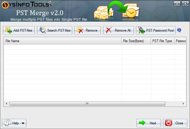 SysInfoTools PST Merge - Version 1.0 SysInfoTools PST Merge software combine unlimited number of PST files into single PST file without changing, deleting or damaging the PST files in just few clicks. This software keeps all the information in a structured way such as contacts, calendars, journals, tasks, email folders, subject, to, from, sent date, received date, attachments, cc, bcc, address, etc while merging the multiple PST files in Single PST File. This is the easiest way to combine the multiple PST files into single PST file. SysInfoTools PST Merge software is designed in such a way that a non-technical user can also use it. Even a novice user can merge PST files using this utility without requiring any technical knowledge. This tool supports password protected PST files and support ANSI and Unicode PST files. SysInfoTools PST Merge software is compatible with all versions of windows, which are as follows Windows 7, Windows Vista, Windows XP, Windows Server 2008, Windows Server 2003, Windows 2000, Windows ME etc and even it also support all versions of MS Outlook 2000, 2002, 2003, 2007, and