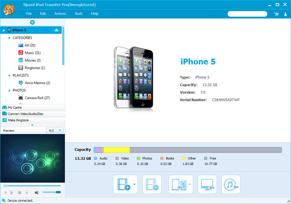 Tipard iPad Transfer Pro - Version 6.1.20 Tipard iPad Transfer Pro, as a wanderful iPad file transfer, can add music, movie, image, ringtone, from PC or iPad with fast transferring speed. And it can transfer music/movie/Pictures/Camera Roll/Ringtone/Voice memos from your iPad to PC or iTunes. Plus, it can support English/French/German/Japanese four interface languages now. Moreover, it highly supports The New iPad, iPhone 5, ios 6, iPod Touch 5, iPad mini, iPad 4 and iPod Nano
