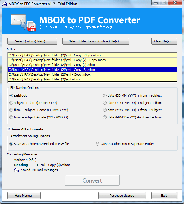 Change MBOX Files into PDF File - Version 1.2 PDF is common internet file format that protects the look and feel of the original file with its layout, text, font, format, images, etc. That's why users want to Change MBOX files to PDF to get full backup for emails, to save the original feel and look of MBOX files. To Convert MBOX messages to PDF users need complete solution Change MBOX Files into PDF File that helps to Switch MBOX mails to PDF jointly with all the Meta Data of MBOX files. Users can fix this issue with Change MBOX Files into PDF File that helps to Change MBOX files to PDF. This application is a complete solution to everyone, who wants to Transfer MBOX files to PDF. You can also use this utility to import your mails MBOX to PDF format. Before purchase the licensed version you can downloads its demo to see that how software works. After then you can purchase the tool from our website.