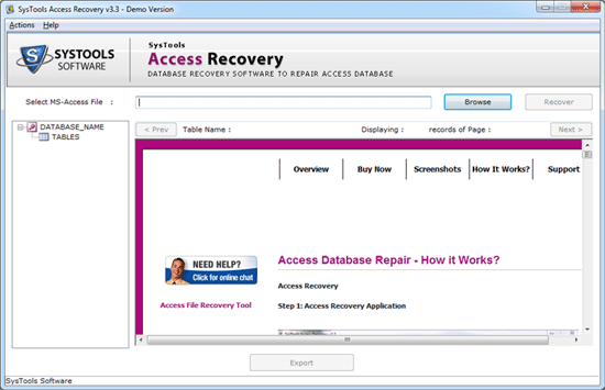 Fix Access Database Tool - Version 3.4 Suddenly hardware/software failure and you lost your access file. To get back the access database and fix access database by using access recovery tool which will not alter original content. Access Database Recovery program is the complete recovery solution to fix MDB file. Access File Repair tool can fix ACCDB file perfectly without any data loss. Access File Repair software is the well designed application program to provide easy solution to access users for troubleshooting any error situation related with their access database. Trail version of Access Database Fix software is available to download for free to fix access file. You can get the full license version of Access Database Fix tool to fix corrupt access file just for 69 USD.http://www.accessfilerepair.net/fix-access-database.html