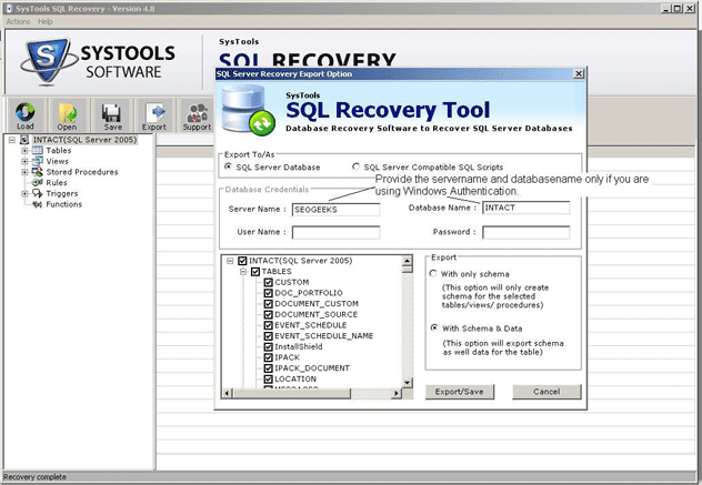 Get Back SQL Server Database - Version 5.5 For seeing your issue of SQL Server database corruption, we have specially designed a free tool to get back SQL Server database files such as MDF files and NDF files which gets damaged due to corruption situation. SQL users can easily recover even large sized SQL database files without facing any single error. SQL Server Database Restore can perform the process of get back corrupt SQL Server Database and enables to retrieve the SQL Server Database from corrupt SQL Server database files. Want to know how to get back SQL Server database? SQL Server database restore process helps SQL users to get back corrupt SQL Server database from corrupt SQL Server files. Our company has launched SQL server database recovery tool in which you can easily recover, repair, restore and get back your corrupt SQL server database. It provides many features gallery like 1) Get back SQL server database instantly.2) Recover table, views, triggers, stored procedures, indexes, constraints, and default or predefined rules etc.