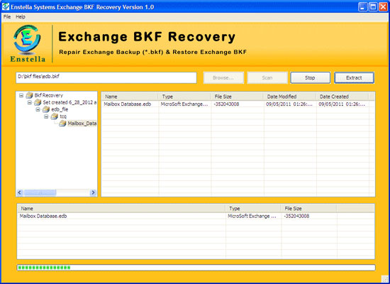 MS Exchange Backup Recovery - Version 1.0 Want to recover Exchange BKF file which is heavily corrupted due to such following reasons likes-Virus/Trojan attacks, Drive failure when NTBackup utility perform exchange backup processes, Cyclic Redundancy Check (CRC) errors, Improper system shutdown due to power failure, Missing catalog files, Backup software malfunctioning, Backup interruptions etc. Than no need to take any tension because Enstella prepared great features based ms exchange backup restore tool which really helps you to extract Exchange backup file from corrupted Exchange BFK files. Enstella best MS Exchange Backup Recovery Software is most excellent Exchange BKF Recovery tool to which repair Exchange BFK file and restore Exchange backup database with all such internal data-Exchange EDB/STM/ LOG files etc.Some Remarkable key features of Enstella Exchange backup BKF Recovery Software* smart solution to recover BKF files easily.* perfectly extract Exchange backup files and restore in accurate format.