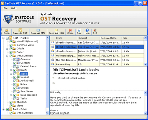 OST Converter to PST - Version 3.7 OST Converter to PST software is elite tool to OST Convert PST. You have superior selection this software How to Create OST File for recuperate offline storage file to personal storage file from Outlook. OST converter to PST tool is high-quality recitalist software. OST Converter to PST software forever does its occupation as exchange offline storage data in personal storage format from Outlook. When your data became corrupted or damaged by some critical problems as Virus attack, Trojan infection, system shutdown automatically, low network connectivity or etc then our software OST Converter to PST has solution to recover your damaged data and saves them to OST to PST, OST to MSG and OST to EML formats. Recover OST to PST application management tool supports all Windows versions as 95, 98, 2000, 2002, 2003, 2005, 2007, XP, NT, CE, ME and win 7. We provide demonstration version of our software for you to check out features of its for only 15 Days. Full version of our software is in @ 99 USD. You can download our Batch OST to PST Converter software to convert OST to