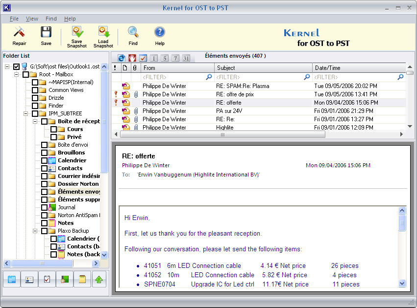 Open Outlook OST File - Version 12.06.01 When any Outlook user works in offline mode (noconnection between MS exchange server and MS Outlook)then the entire work get stored into the offlinestorage table (OST) files. Just after re-establishingthe connection between MS exchange server and outlook,your complete data working in offline mode getsynchronized with the PST files. Sometimes, the OSTfiles become orphaned when they find no connection withexchange server for a long time. They are also veryvulnerable to get damaged with any improper functioninglike sudden system shut down, malicious virus attack,software malfunctioning, network breakdown, hard diskfailure etc. In order to open Outlook OST files, youcan make use of the OST Integrity Check Tool called asscanost.exe tool which is an inbuilt and free toolprovided by Microsoft. This free tool can check andscan the OST files for synchronization issues but it iseffective only for minor OST issues. Kernel for OST to PST is advanced tool that can resolveany minor or severe issue of Outlook OST. This toolfacilitates you to import corrupt Offline storage table(OST) and recover it in just few minutes and finallysave them in PST file format. OST files usually getcorrupt due to restricted limitation of 2 GB and afterexceeding the 2 GB limit the data contained in it theyget damaged or become inaccessible. Kernel for OST toPST is the best tool to open Outlook OST file in theaccessible form. This software performs a complete scanof unreachable Offline storage table; displays all thefiles of OST in tree like structure so that you canrecognize your important email item with its preview.The utility finally recovers and save them at desiredlocation in the form of PST file which can be easilyaccessed with MS Outlook. For more information pleasevisit: www.openost.com