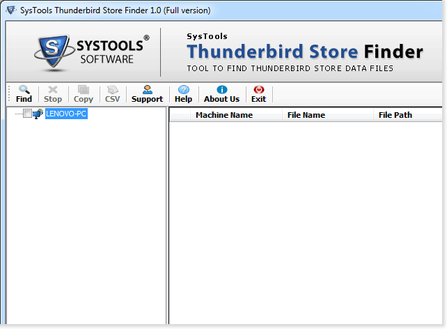 Thunderbird Store Finder - Version 1.0 How to find thunderbird profile folder? Download Thunderbird store finder to find Thunderbird email files whether they are configured or orphan. Thunderbird store finder offers the possibility for thunderbird users to find Thunderbird data files from one computer to another computer at the same time. It can easily find the location of profile folder from the computers that are connected within same network connectivity and also from the computer on which the software is running process. Software embedded with advance technology that satisfies user requirements to transfer profile folder from one machine to another machine without any tribulations. Explicable procedures and easy steps provide systematic approach in executing Thunderbird data files in exact way. Software safely run of all Windows versions effectively and provides user friendly solution to manage emails file from Thunderbird successfully. Trial version of Thunderbird Store Finder provides only preview of listed profile folders, so that user can test the working functionality of the software